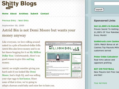 I was lucky enough to be featured on ShittyBlogs.com! Only a 3.5 shittiness rating?! I'm shocked!